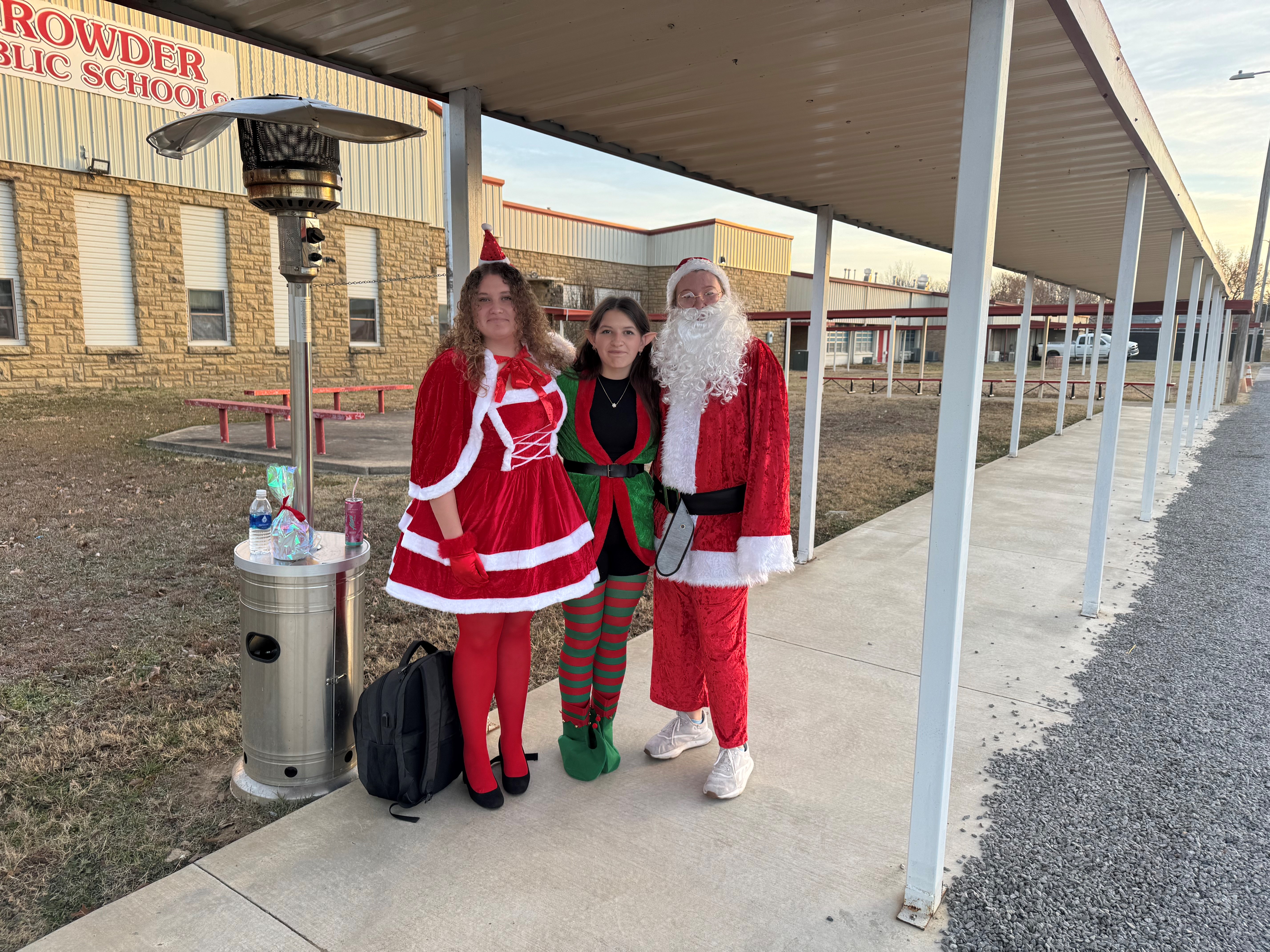 Santa's Helpers came to help open car doors and greet students on our last day before Christmas Break.